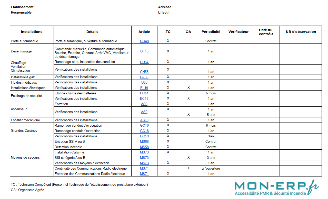 - Tous les 3 à 5 ans selon le type d’ERP.